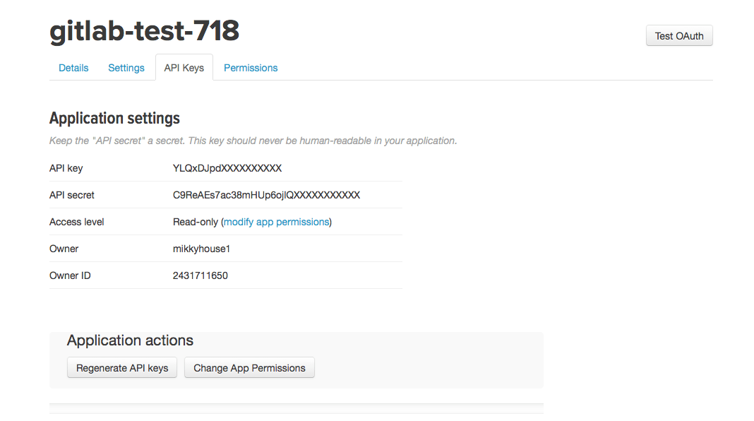 To enable the Twitter OmniAuth provider you must register your application with Twitter. Twitter generates a client ID and secret key for you to use.