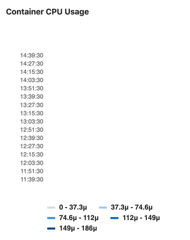WARNING: When a query returns too many data points, the heatmap data bucket dimensions tend downwards to 0, making the chart's data invisible, as shown in the image below. To fix this problem, limit the amount of data returned by changing the time range filter on the metrics dashboard UI, or adding the step property to your dashboard's YAML file.