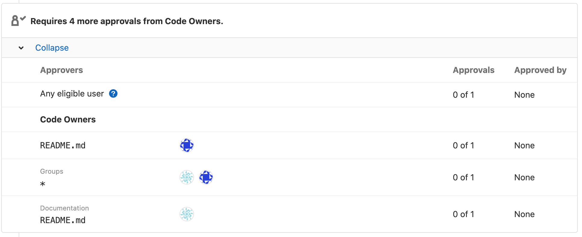 - A Code Owner group has a visibility of private, and the current user is not a member of the Code Owner group.