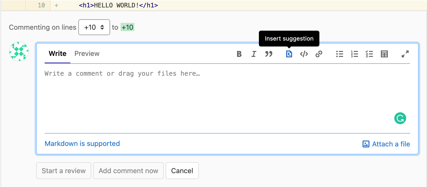 Changed in GitLab 13.11: suggestions in multi-line comments also become multi-line.